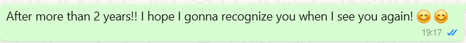 Ik grap ermee en vraag hem of ik hem nog ga herkennen, na twee volle jaren elkaar niet meer gezien te hebben. Heel droog en serieus zoals altijd antwoordt hij: “Natuurlijk ga je mij nog herkennen.”