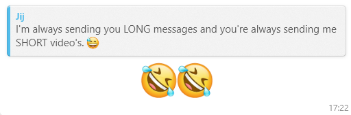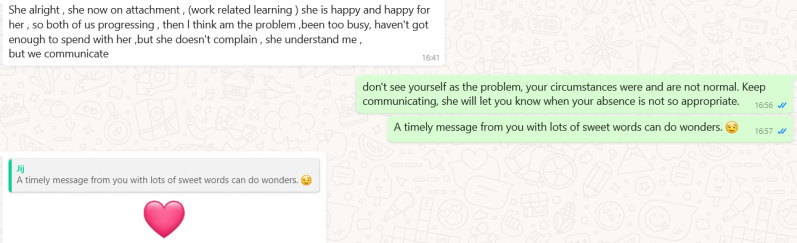 Ik merk dat Dominic vrolijker klinkt in zijn voiceberichten en berichtjes. Het gaat duidelijk beter met hem, al is het harde werk nog lang niet gedaan. We babbelen nog wat over zijn lieve vriendinnetje, maken wat grapjes, en zo zit onze dag er alweer op.