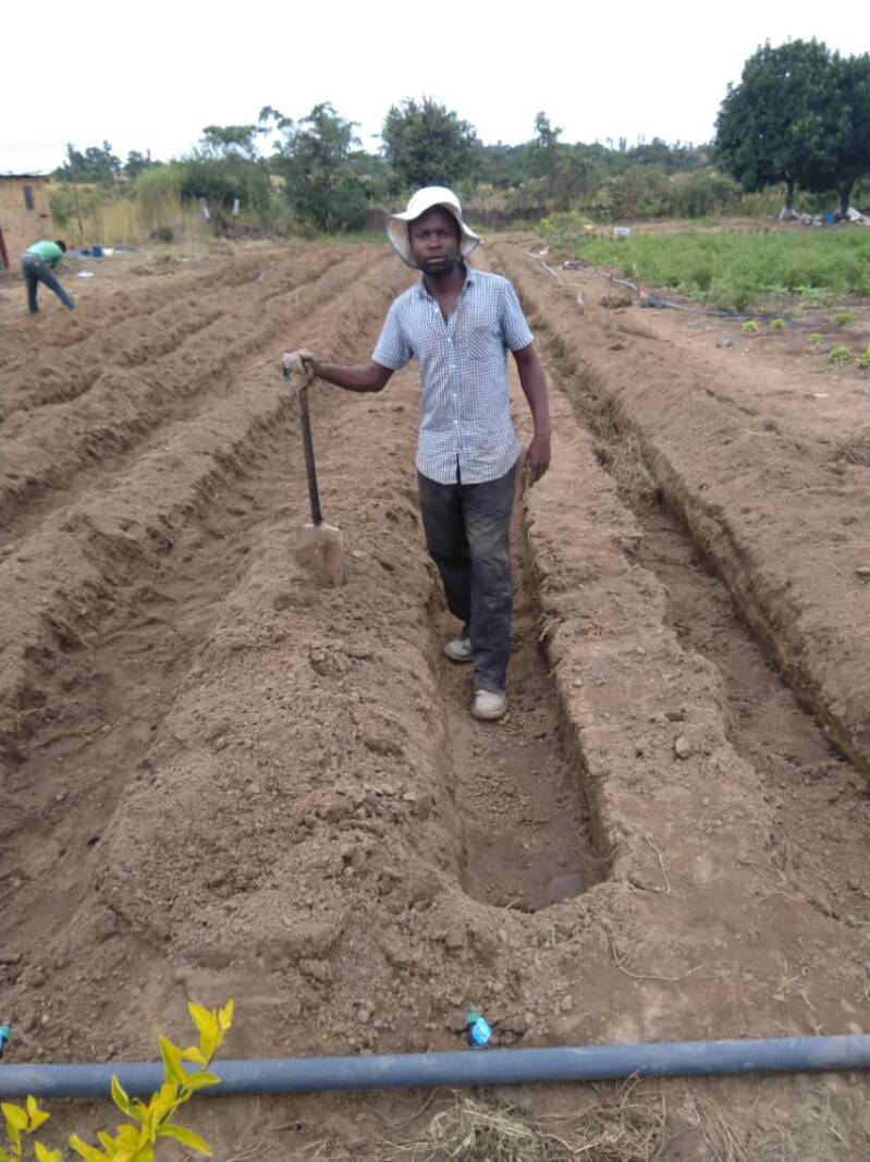 Ik kom bij Dominic nog even terug op het stuk land dat hij van de minister heeft gekregen. Hij vertelde me dat het voor de buitenwereld zichtbaar moet zijn dat het land effectief gebruikt wordt. Als dat niet zo is, kan de minister het terug opeisen. Ondanks alle tegenslagen is het hem toch gelukt om het tot nu toe in bezit te houden.